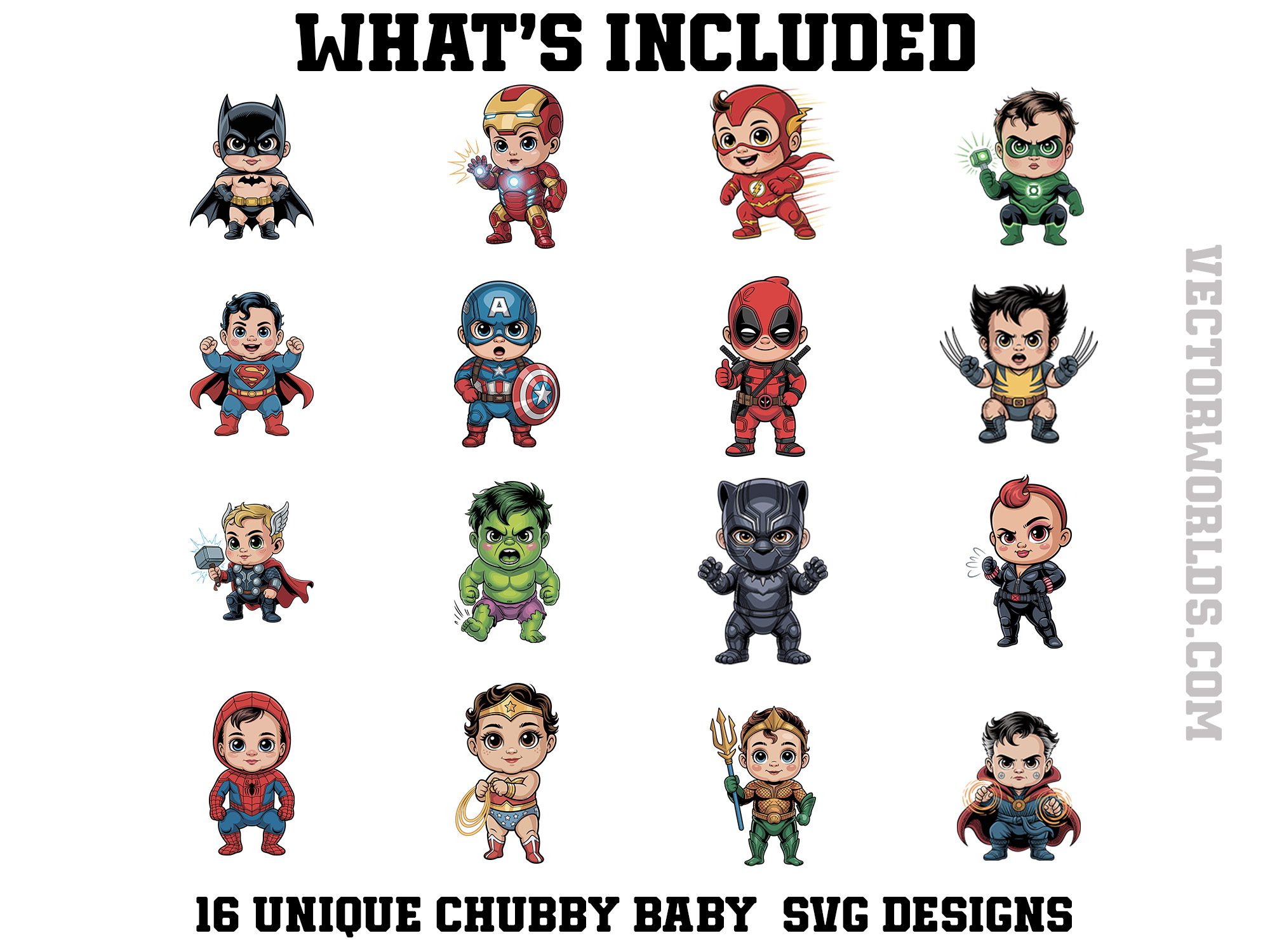 16 Chubby Baby Superheroes Bundle SVG, PNG, EPS, AI