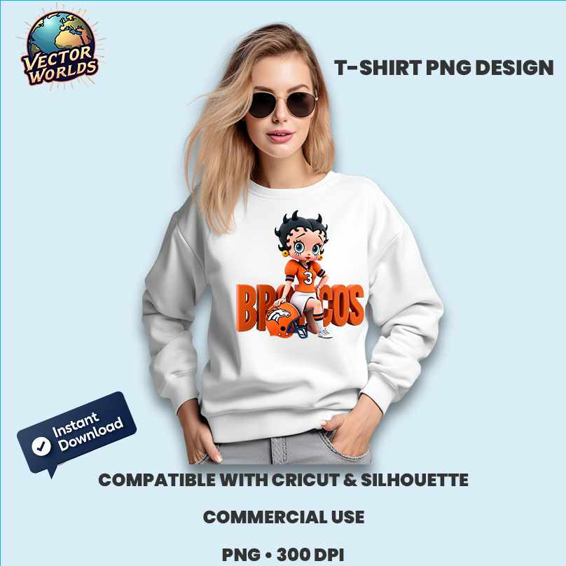 This Betty Denver Broncos PNG sublimation design is ideal for a wide range of creative applications. From personalized gifts to commercial product lines, this file gives you the flexibility to create unique and eye-catching designs.