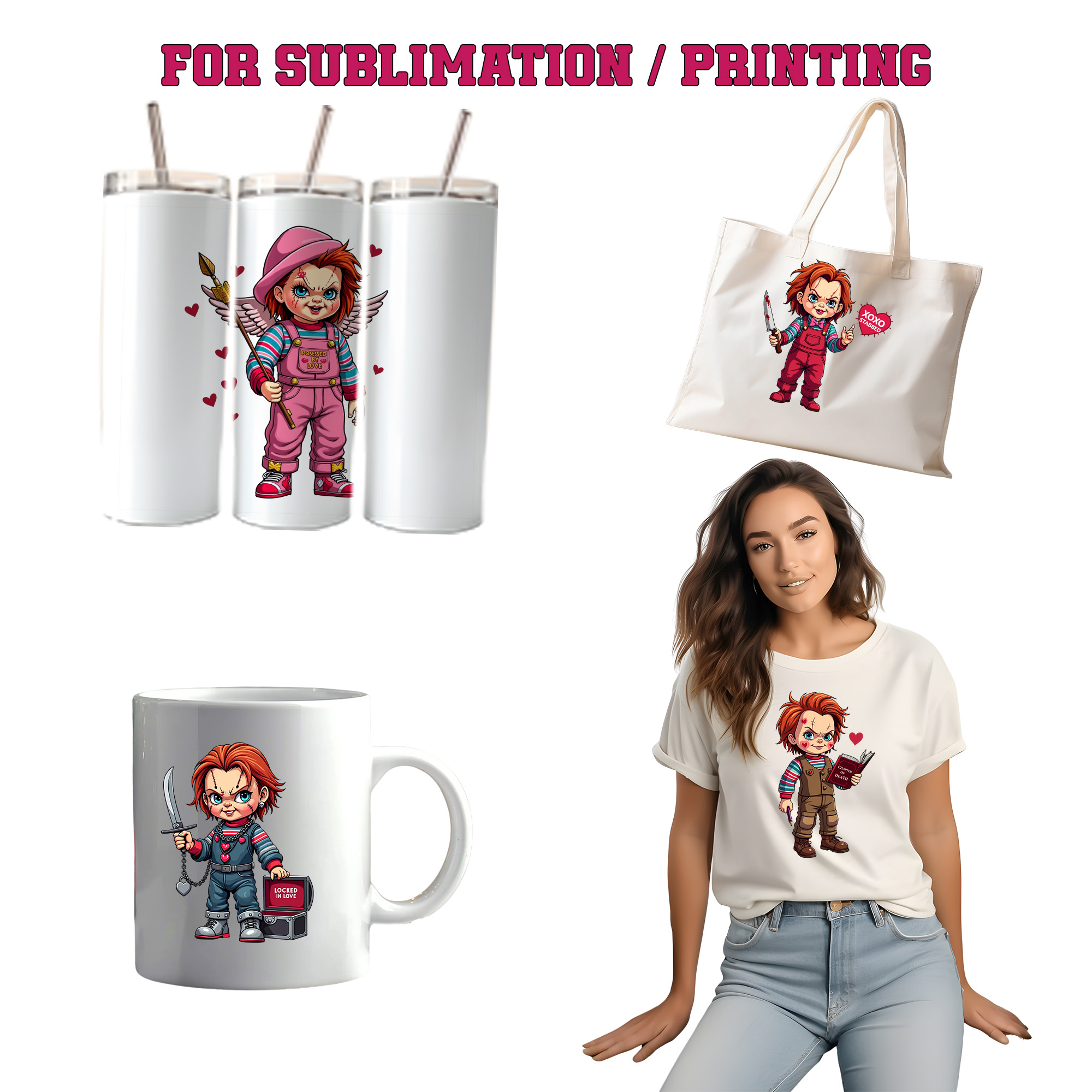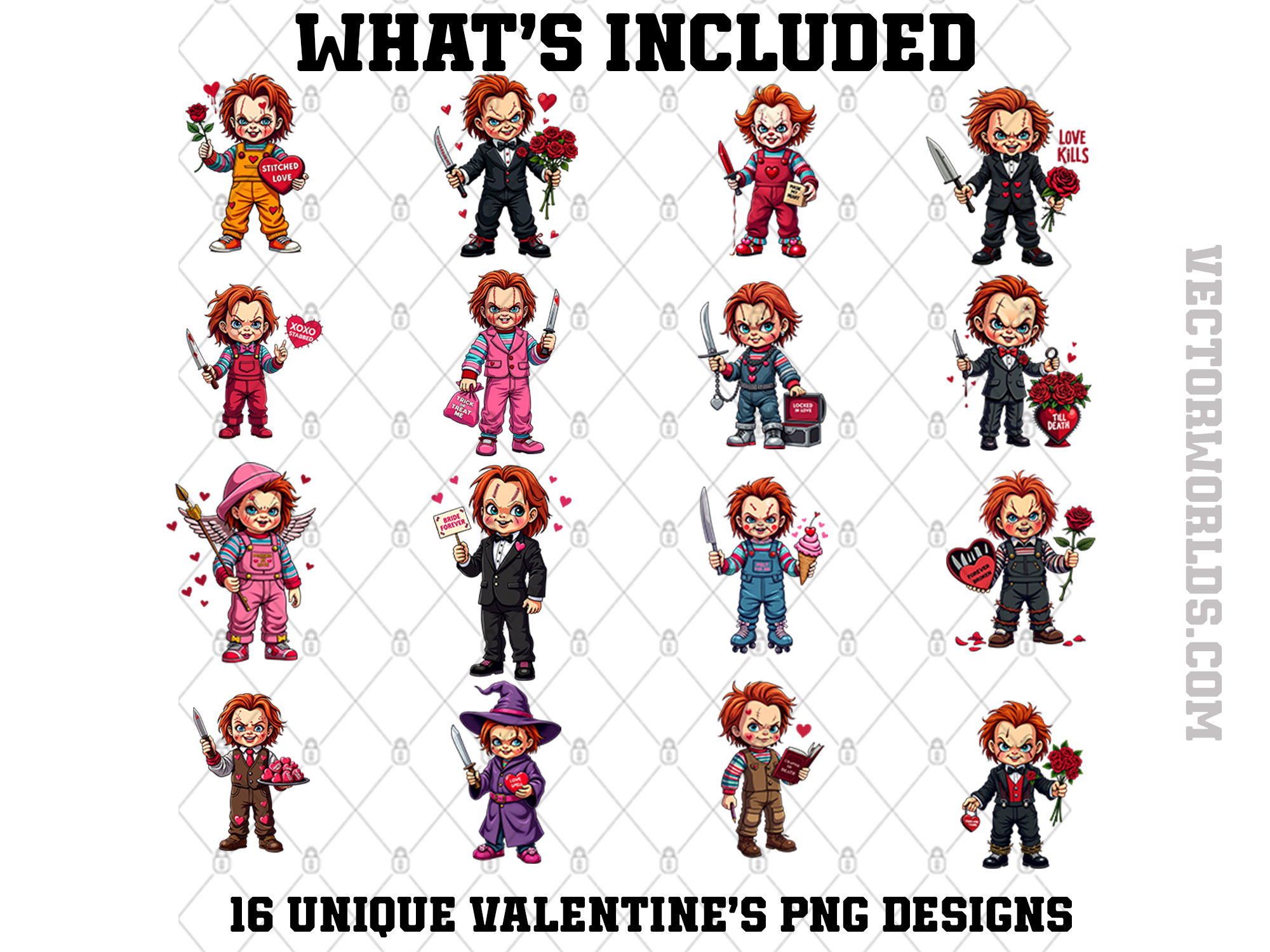 Chucky Valentine’s Collection – 16 Premium PNGs for Sublimation & Print
