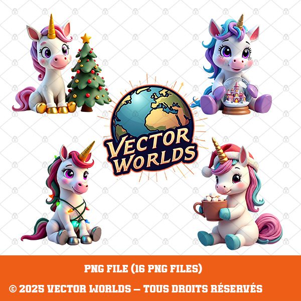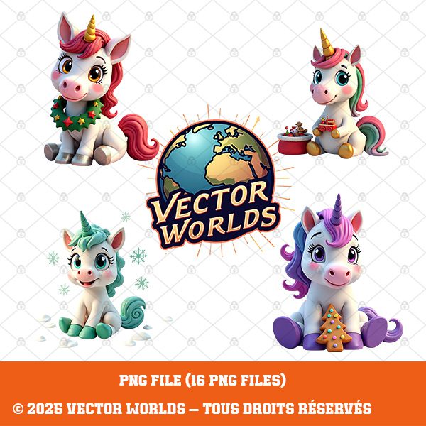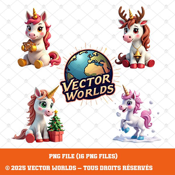 Soyez le premier à laisser votre avis sur “16 PNG Licornes de Noël – Illustrations Cartoon 3D, Licorne Festive, Fichier Transparent pour Sublimation, Scrapbooking, Décoration de Fêtes”