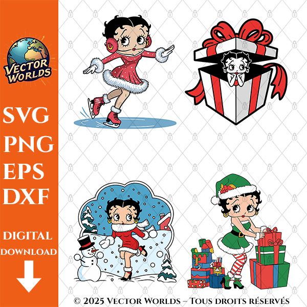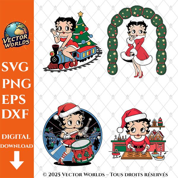 Noël De Betty Boop – 16 Fichiers SVG, PNG, EPS, DXF | Vector Worlds