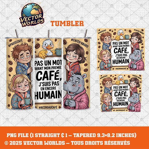 Pas un mot avant mon premier café, j’suis pas encore humain – 1 fichier – TUMBLER PNG – Vector Worlds